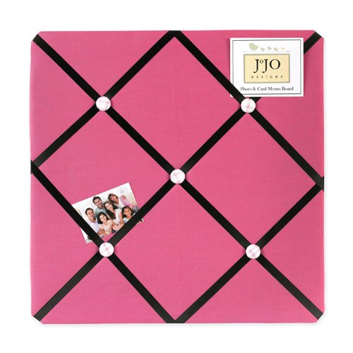 Show off postcards, notes and photos on this JoJo Designs fabric memo board with button detail. Just slip your mementos behind the grossgrain ribbon to create an engaging piece of original wall art. These adorable memo boards by JoJo Designs have been created to coordinate with the matching children's bedding sets. Even if you have not purchased a JoJo bedding set, these wonderful wall decorations can enhance the decor of any room.